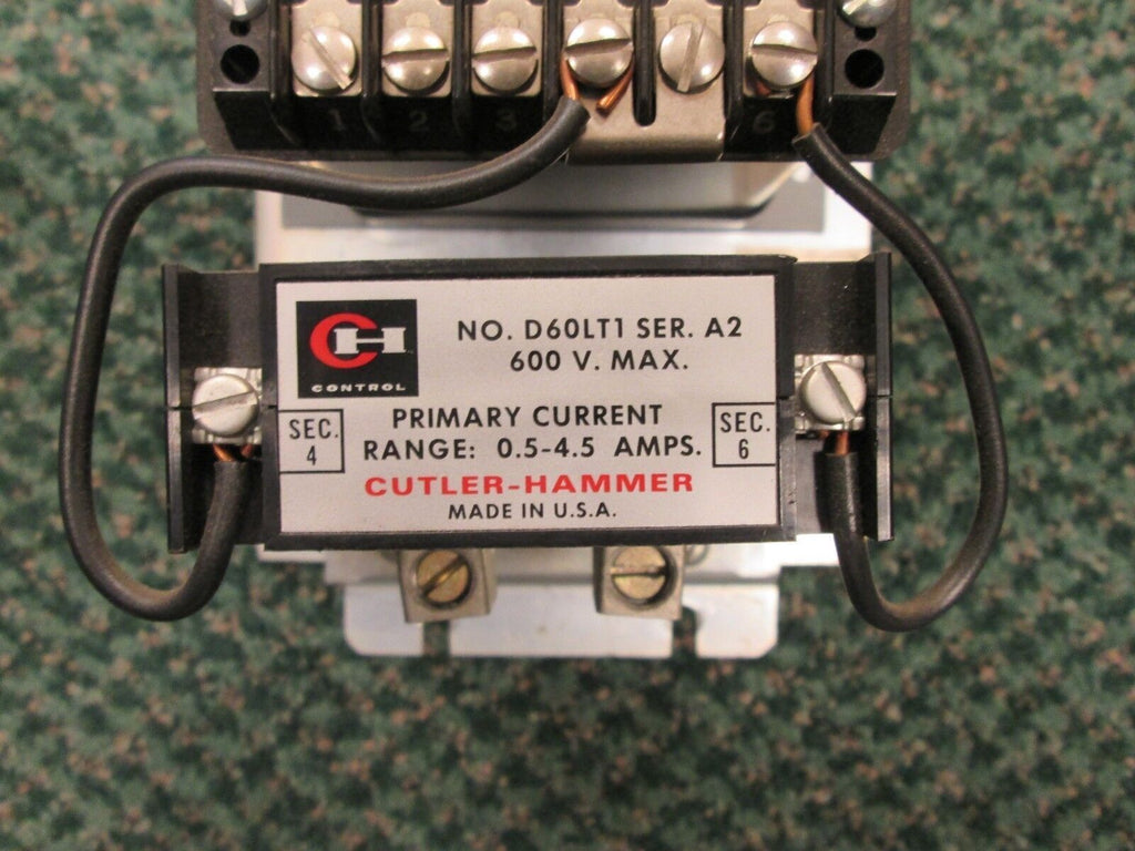 Cutler-Hammer Current Relay Part #: D60LA0 Trip: .5-4.5A 600...