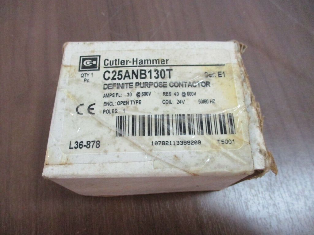 Cutler-Hammer, Definite Purpose Contactor, C25ANB130T, 24V Coil, 30A, 600V Condition: New – Open boxResistive Full Load: 30 AFull Load Amperage Rating: 30 AMPN: Definite Purpose ContactorBrand: Cutler- HammerInductive Full Load: 30 A Cutler-Hammer, Definite Purpose Contactor, C25ANB130T, 24V Coil, 30A, 600V Cutler-HammerDefinite Purpose ContactorPart #: C25ANB130T24V Coil30A600VNew SurplusLoc 15A3-38 Cutler-HammerDefinite Purpose Contactor Part #: C25ANB130T 24V Coil 30A 600V New Surplus Loc 15A3-38