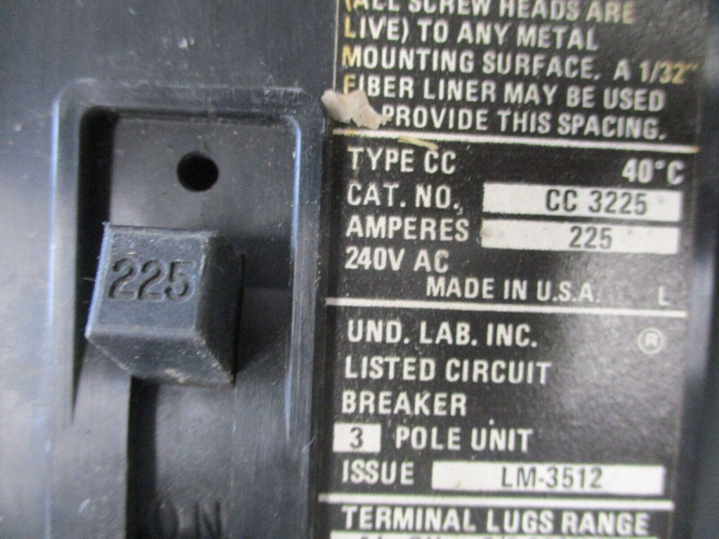 Cutler-Hammer Enclosed Circuit Breaker CC 3225 225A 240V 3P Ty...