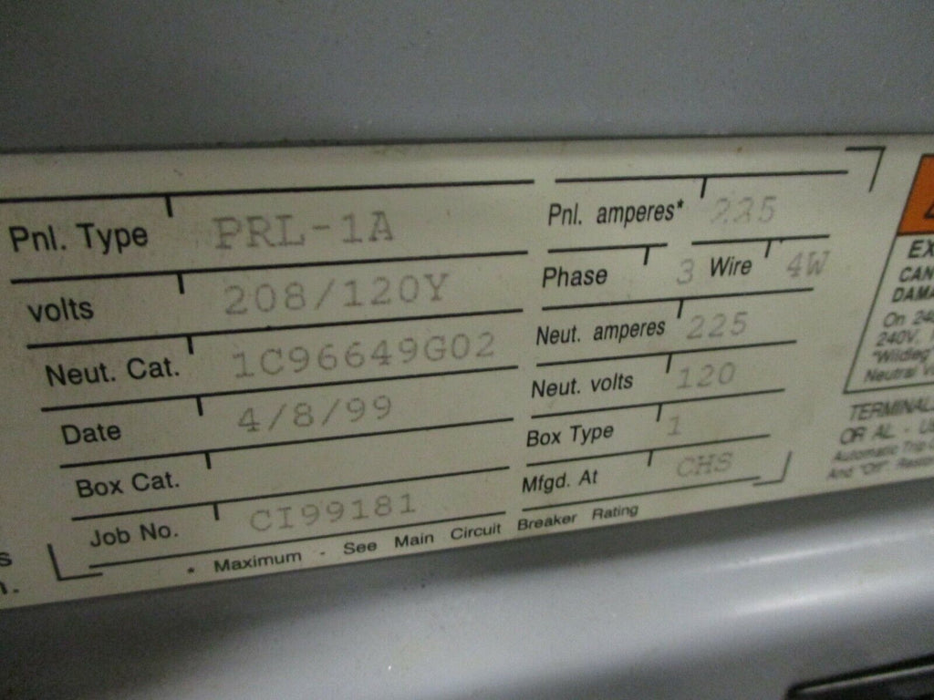 Cutler-Hammer Main Lug Breaker Panel 1C96649G02 225A Max 208Y/...