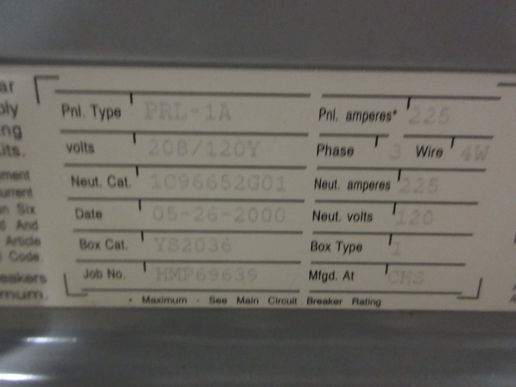 Cutler-Hammer Main Lug Breaker Panel Part #: 1C96652G01 225 ...
