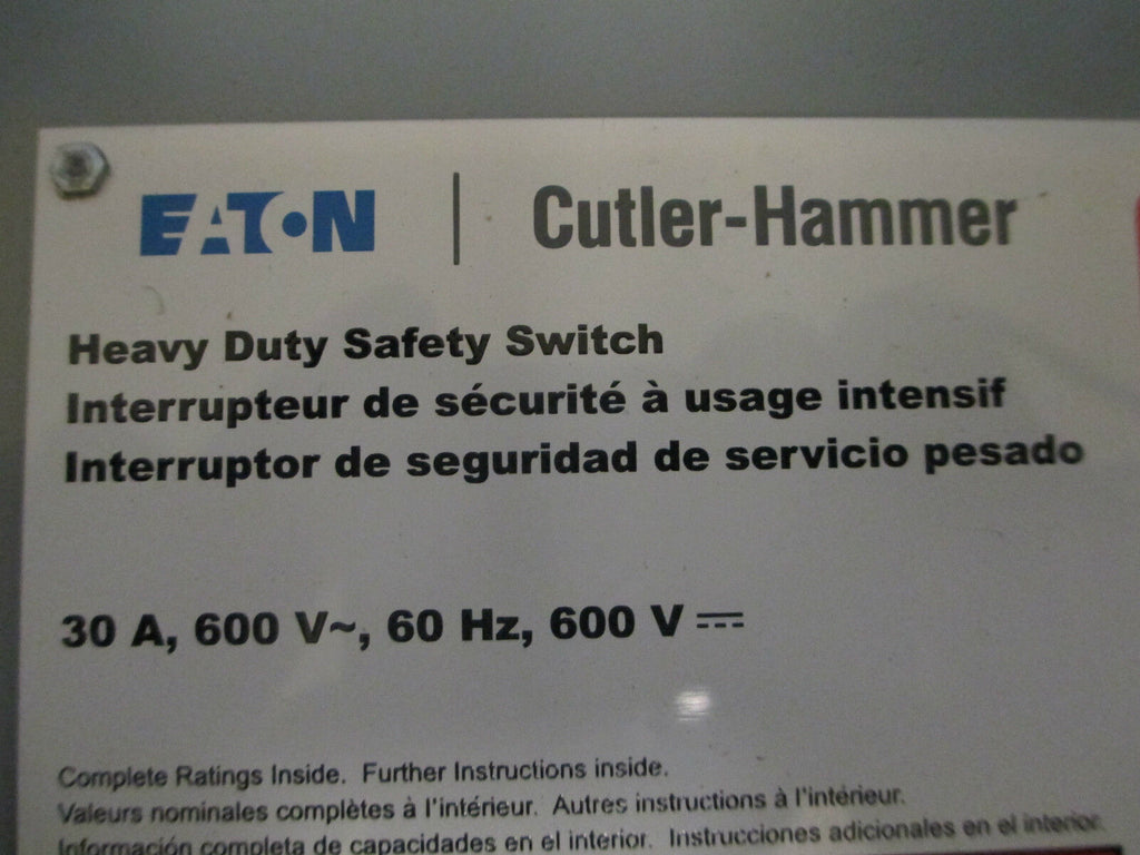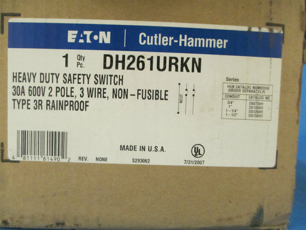 Cutler-Hammer Safety Switch DH261URKN 30A 600V 2P 3W Non-Fusible New Surplus