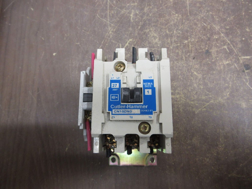 Cutler-Hammer Size 1 Contactor CN15DN3 Ser. B1 120V Coil 27A (1) Aux Contact Cutler-Hammer Size 1 Contactor Part #: CN15DN3 Ser. B1 120 V Coil 27 A (1) Aux Contact Used Loc: 59H2-14