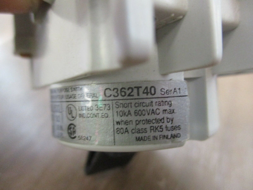 Cutler-Hammer Switch C362T40 40A 600V 3Ph w/ On/Off Cover Used Condition: UsedMPN: C362T40Brand: Cutler-Hammer Cutler-Hammer Switch C362T40 40A 600V 3Ph w/ On/Off Cover Used Cutler-Hammer Switch Part #: C362T40 40A 600V 3Ph Usedw/ On/Off Cover LOC 25D4-49 Cutler-Hammer Switch Part #: C362T40 40A 600V 3Ph Uséd w/ On/Off Cover LOC 25D4-49
