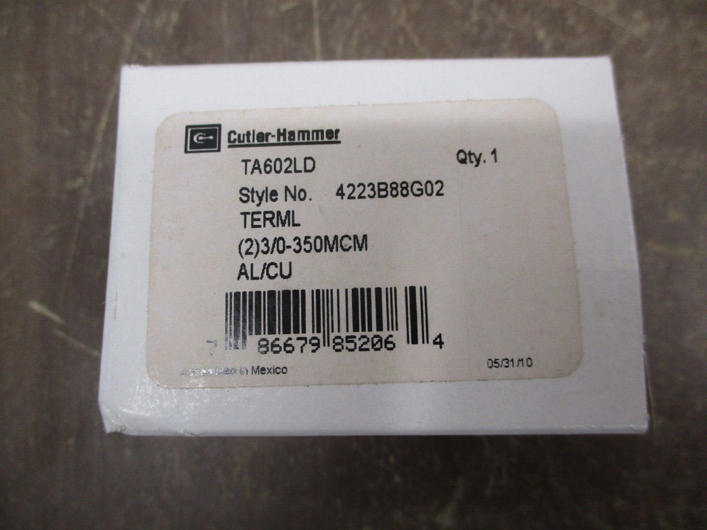 Cutler-Hammer Terminal Lug TA602LD (2) 3/0-350MCM Style #: 4223B88G02_x000D_ Cutler-Hammer Terminal Lug Part #: TA602LD (2) 3/0-350MCM Style #: 4223B88G02 New Surplus Loc: 28G5-2_x000D_ Cutler-Hammer Terminal Lug _x000D_ Part #: TA602LD _x000D_ (2) 3/0-350MCM _x000D_ Style #: 4223B88G02 _x000D_ New Surplus _x000D_ _x000D_ _x000D_ _x000D_ _x000D_ _x000D_ _x000D_ _x000D_ _x000D_ _x000D_ _x000D_ _x000D_ _x000D_ _x000D_ _x000D_ _x000D_ _x000D_ Loc: 28G5-2_x000D_