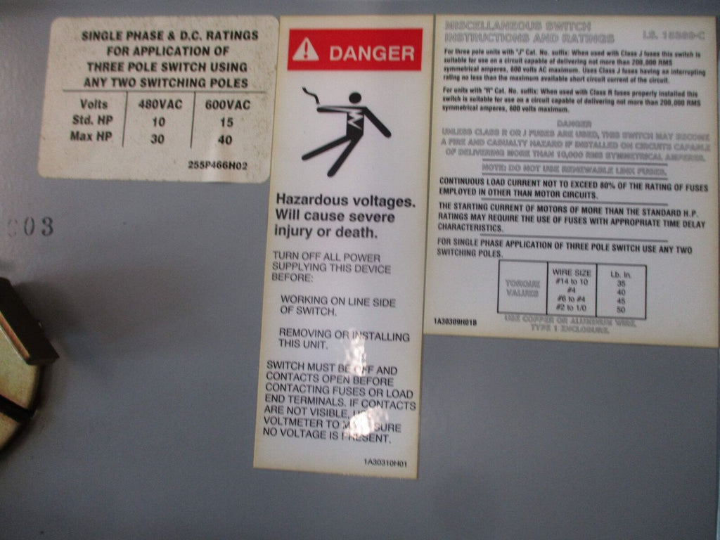 Cutler-Hammer Type M50 Dual Panelboard Switch FDPWT 3633R 100A 600V Used_x000D_ Cutler-Hammer Type M50 Dual Panelboard Switch FDPWT 3633R 100A 600V Used LOC AB11-7853 / AB13N2