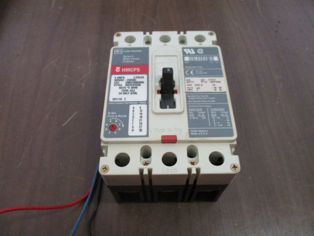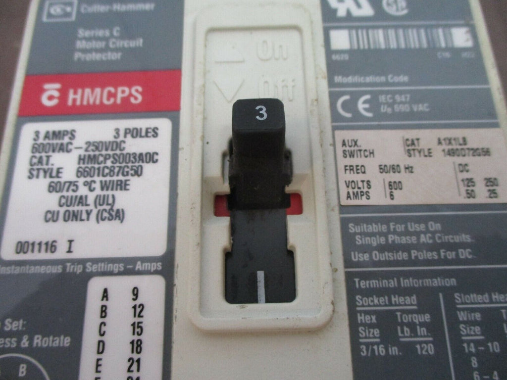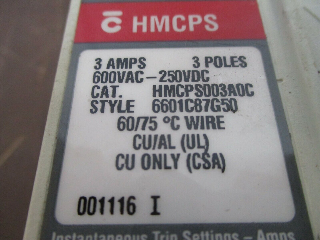 Cutler-Hammer / Westinghouse Circuit Breaker w/ Aux HMCP003A0C 3A 600V 3P Used