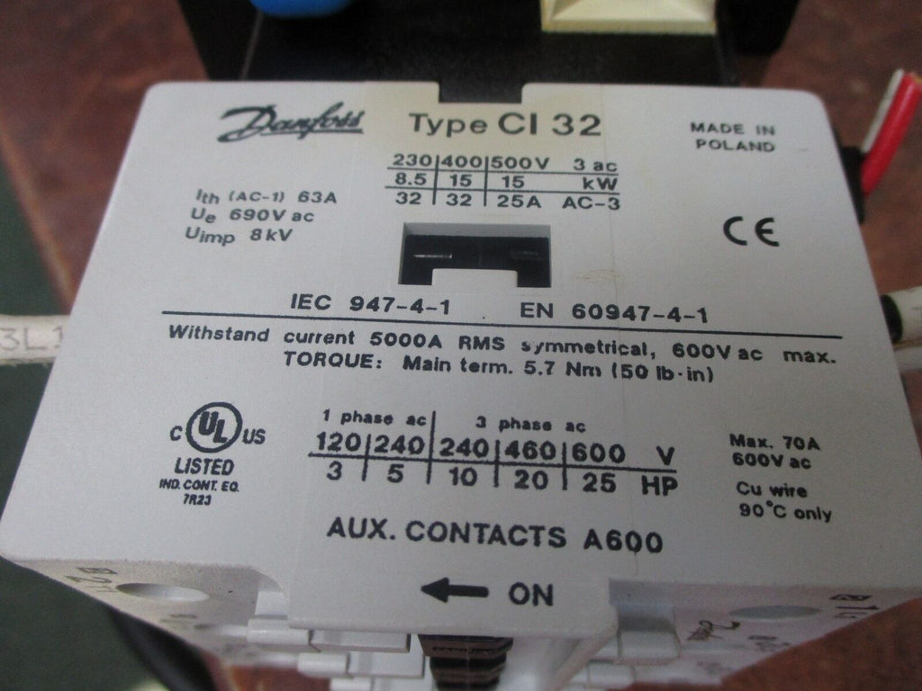 Danfoss Contactor CI 32 110V Coil 70A 600V Used Condition: Use...