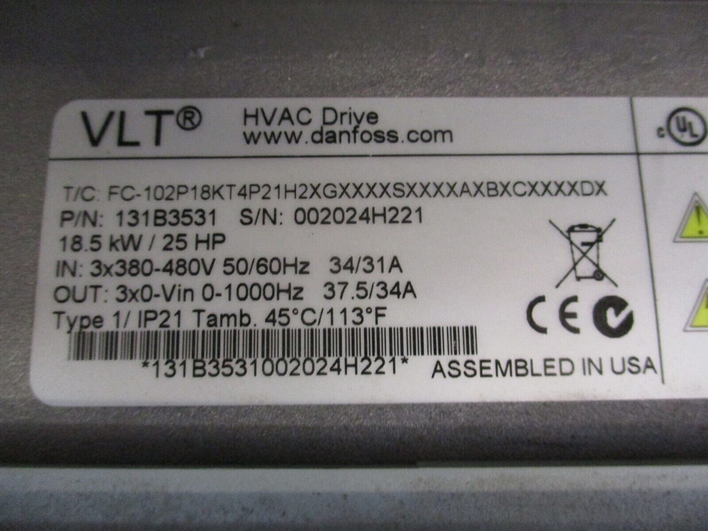 Danfoss VLT AC Drive 131B3531 25HP 3Ph w/ Keypad Used_x000D_ C...