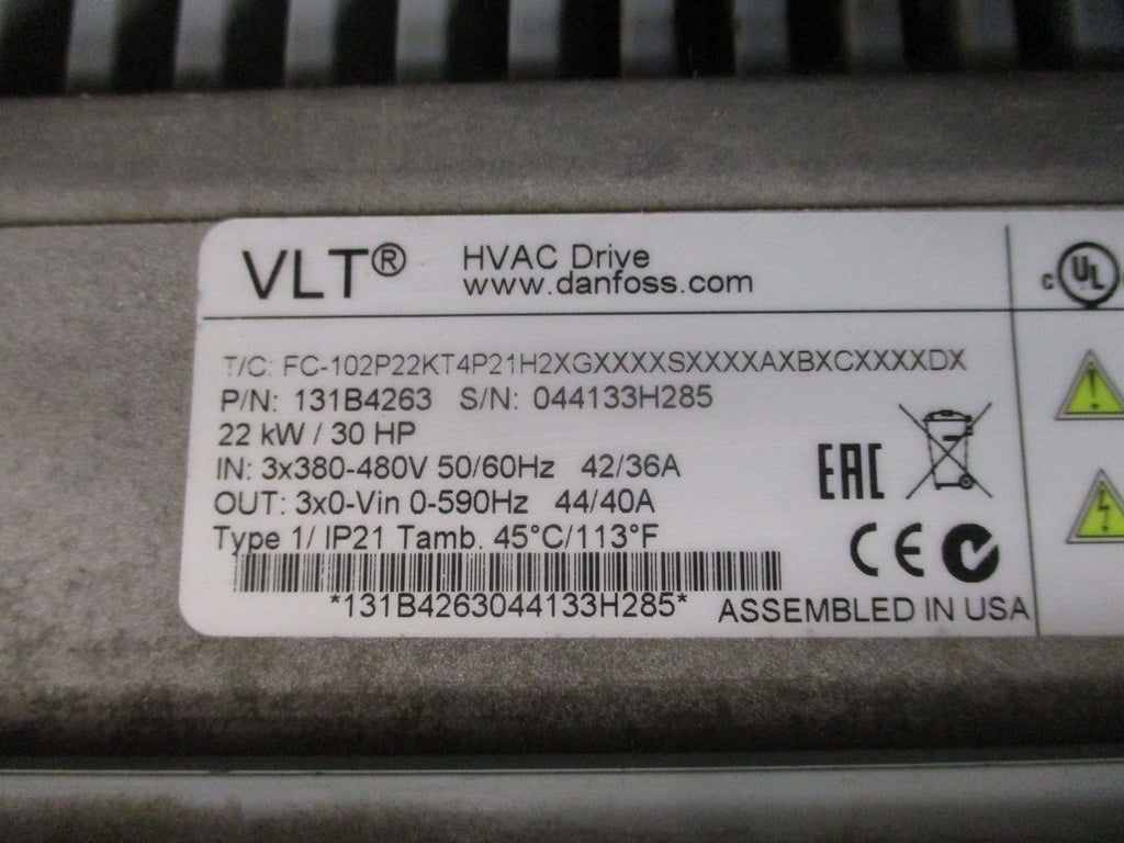 Danfoss VLT AC Drive 131B4263 30HP 3Ph Input: 3x380-480V 50/60Hz 42/36A Output: 3x0-Vin 0-590Hz 44/40A W/Keypad Used LOC AB11-7988 / AB7B4