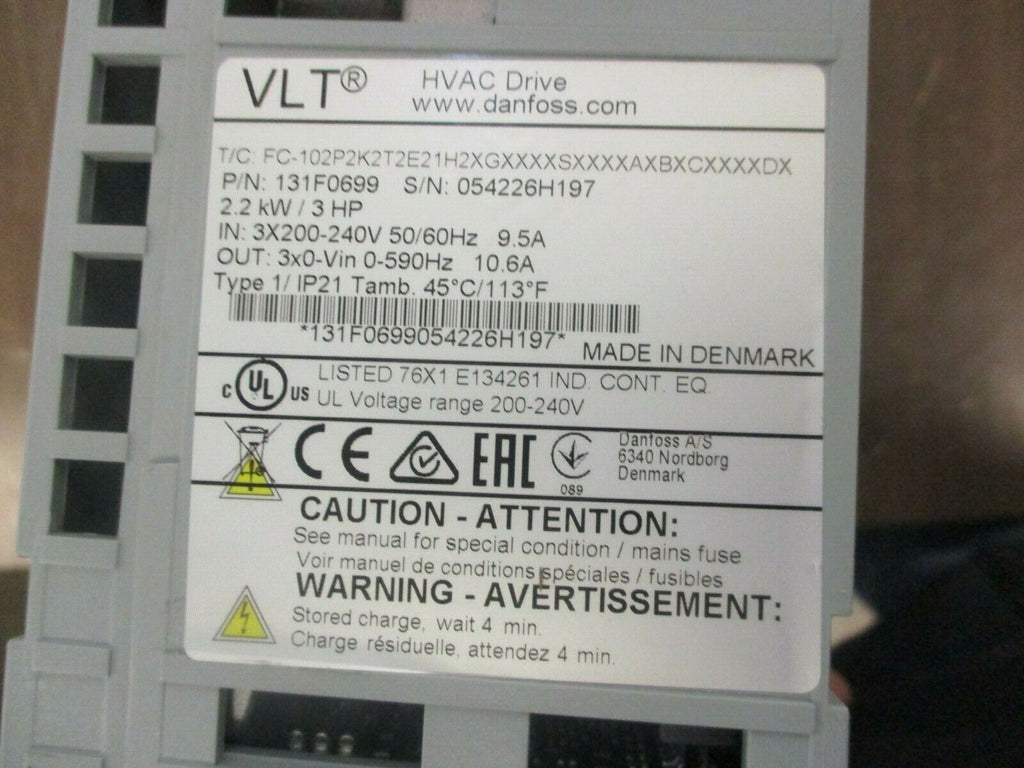 Danfoss VLT AC Drive 131F0699 3HP 3Ph *No Keypad/Missing Cover* Used_x000D_ Condition: UsedMaximum Load: 3 HPMPN: 131F0699Brand: Danfoss Danfoss VLT AC Drive 131F0699 3HP 3Ph *No Keypad/Missing Cover* Used Danfoss VLT AC Drive Part #: 131F0699 3HP 3Ph Input:3X200-240V50/60Hz9.5AOutput:3x0-Vin0-590Hz10.6AUsed**No Keypad / Missing Cover**LOC AB3C2-8 Danfoss VLT AC Drive Part #: 131F0699 3HP 3Ph Input: 3X200-240V 50/60Hz 9.5A Output: 3x0-Vin 0-590Hz 10.6A Uséd **No Keypad / Missing Cover** LOC AB3C2-8