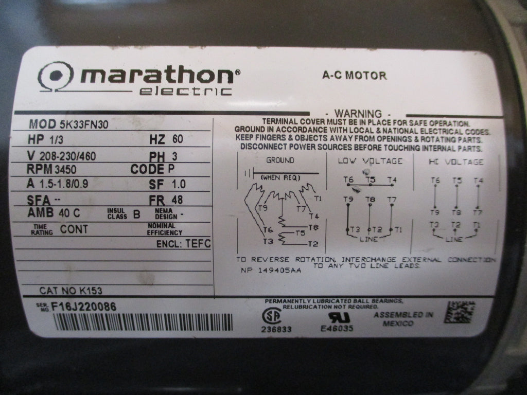 Dayton Blower Part #: 48LX11 1/3 HP 3450 RPM 208-230/460 V 3P...