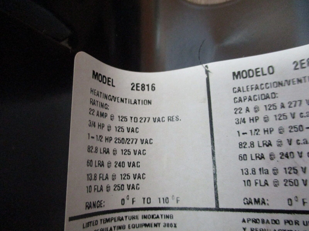 Dayton Thermostat 2E816 125-277V Range: 0-110°F *Missing Cover Screw* Used