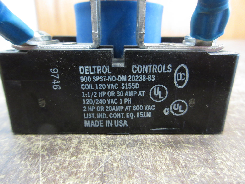 Deltrol Controls Power Relay 900 SPST-N0-DM 20238-83 120V Coil 30A/20A Used