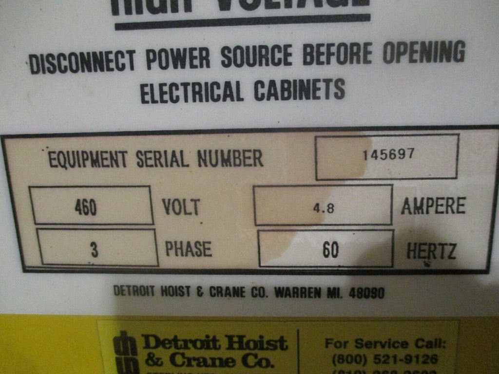 Detroit Hoist & Crane Co. 3-Ton Hoist 460V 4.8A 3Ph 60Hz Used