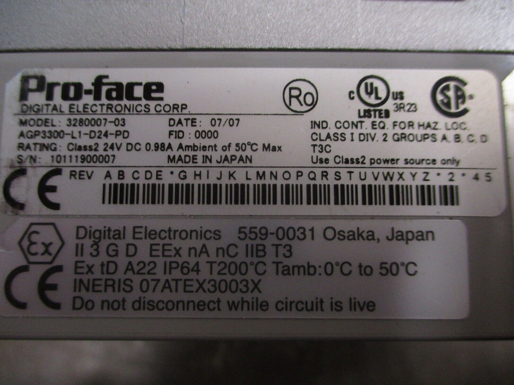Digital Electronics Pro-Face Touchscreen Operator Interface 3280007-03 24VDC