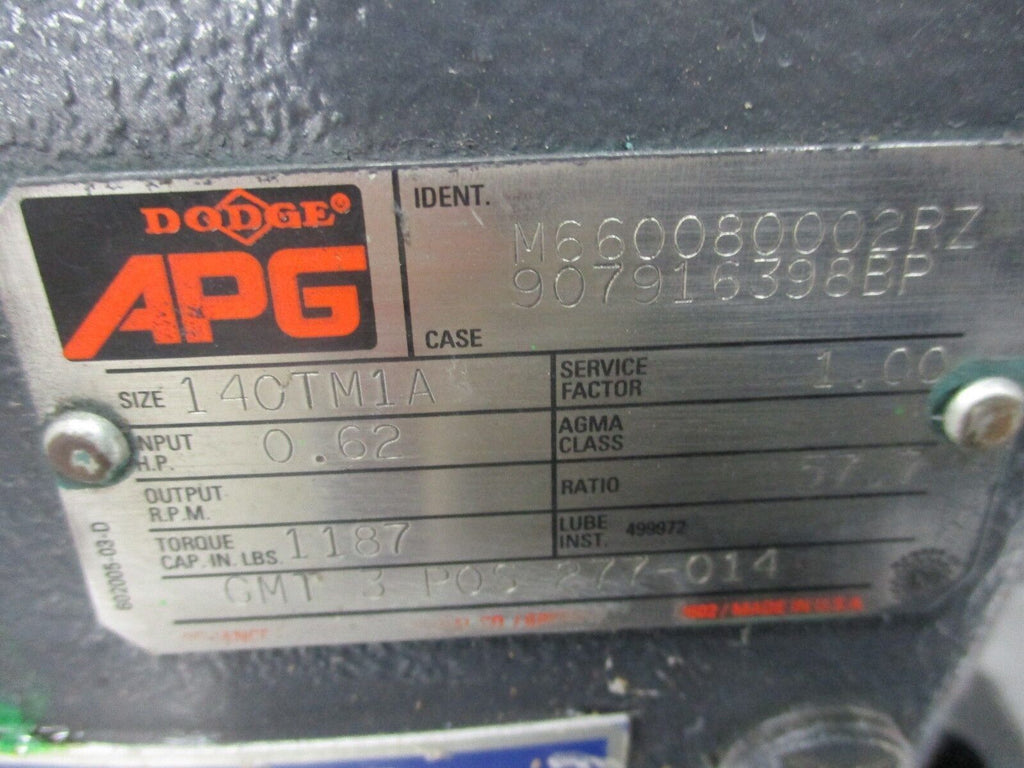 Dodge APG Gear M660080002RZ Size: 140TM1A Ratio: 57.7 1187 Torque In-LBS Used