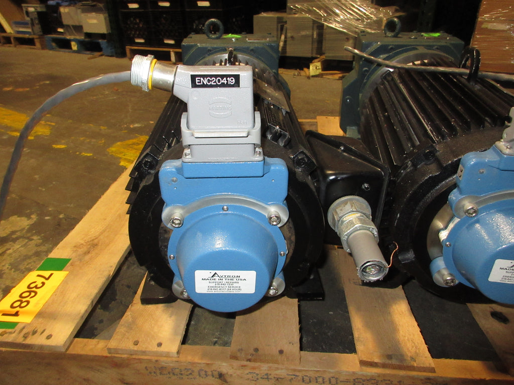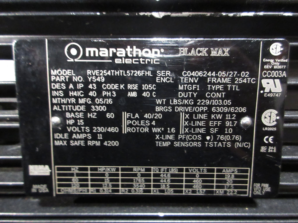 Dodge/Marathon Gearmotor Part #: HB882CN250TC/Y549 15 HP 230/460 V 40/20 A Ratio 7.59 Output Torque: 11,796 Max 3Ph 60 Hz w/ Encoder Encoder Model #: AV56A Dims: 46" x 16" x 16" Weighs: 450 LBS Used Loc: AB11-8488 / AB29E6