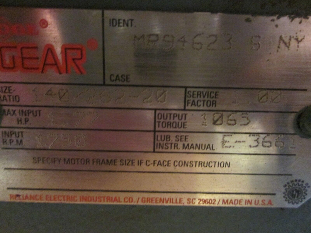Dodge Reducer w/ Clutch Brake 140/262-20 Ratio 20:1 Horton 801624 Clutch Brake