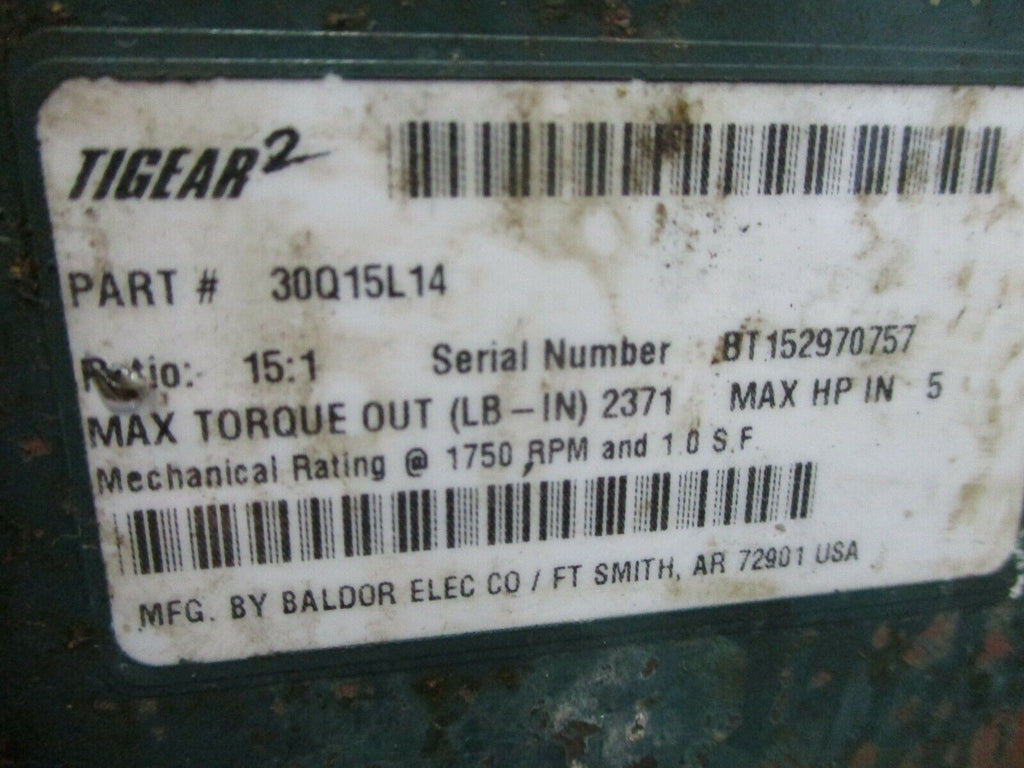 Dodge Tigear 2 Reducer 30Q15L14 Ratio: 15:1 5 HP In 2371 LB-In Torque Out Used