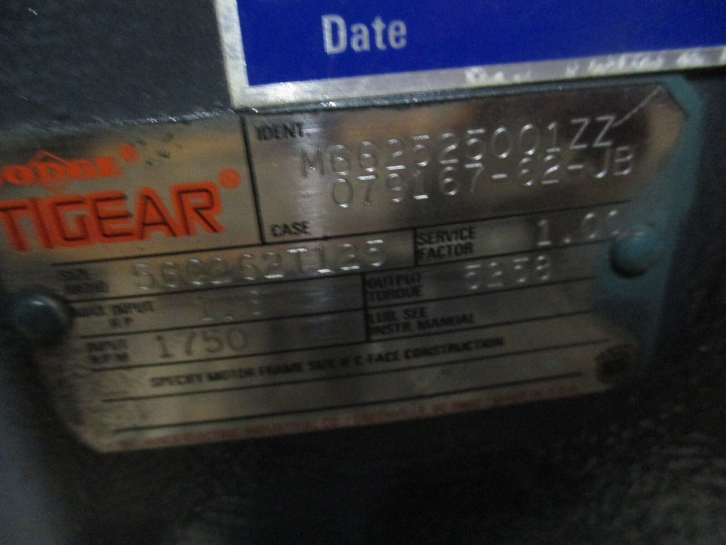 Dodge Tigear Reducer 56C262T125 Ratio: 125 1.6HP In 1800RPM In...