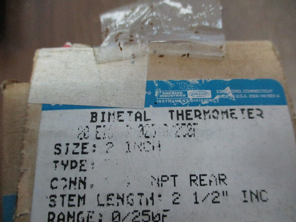 Dresser Thermometer 20 EI60R025 0/250F Size: 2" Stem: 2 1/2" R...