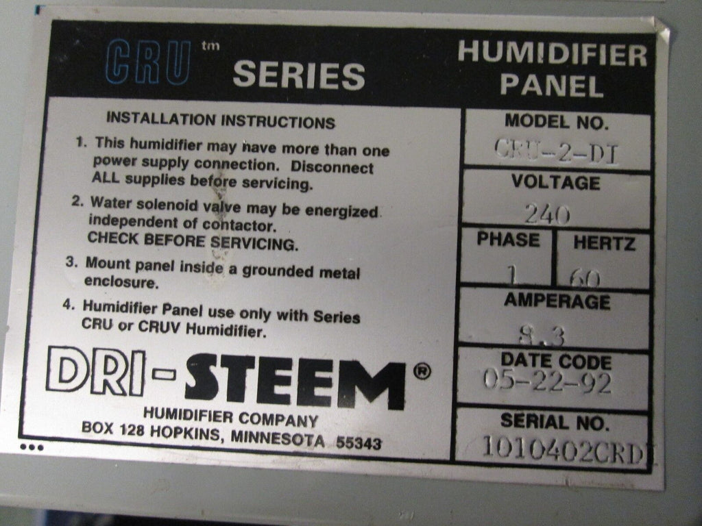 Dri-Steem/Solitech Humidifier Controller CRU-2-DI 101-M1-240-040-C 240V 1Ph Used Condition: UsedBrand: Dri-Steem / SolitechModel: Humidifier ControllerMPN: CRU-2-DI Dri-Steem/Solitech Humidifier Controller CRU-2-DI 101-M1-240-040-C 240V 1Ph Used Dri-Steem/Solitech Humidifier Controller Part #: CRU-2-DI 101-M1-240-040-C 240V 1Ph UsedLOC 16H2-1 Dri-Steem/Solitech Humidifier Controller Part #: CRU-2-DI 101-M1-240-040-C 240V 1Ph Uséd LOC 16H2-1