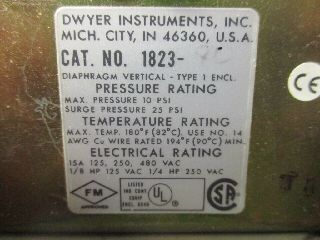 Dwyer Pressure Switch 1823-80 15A 125/250/480V 10PSI Used_x000...