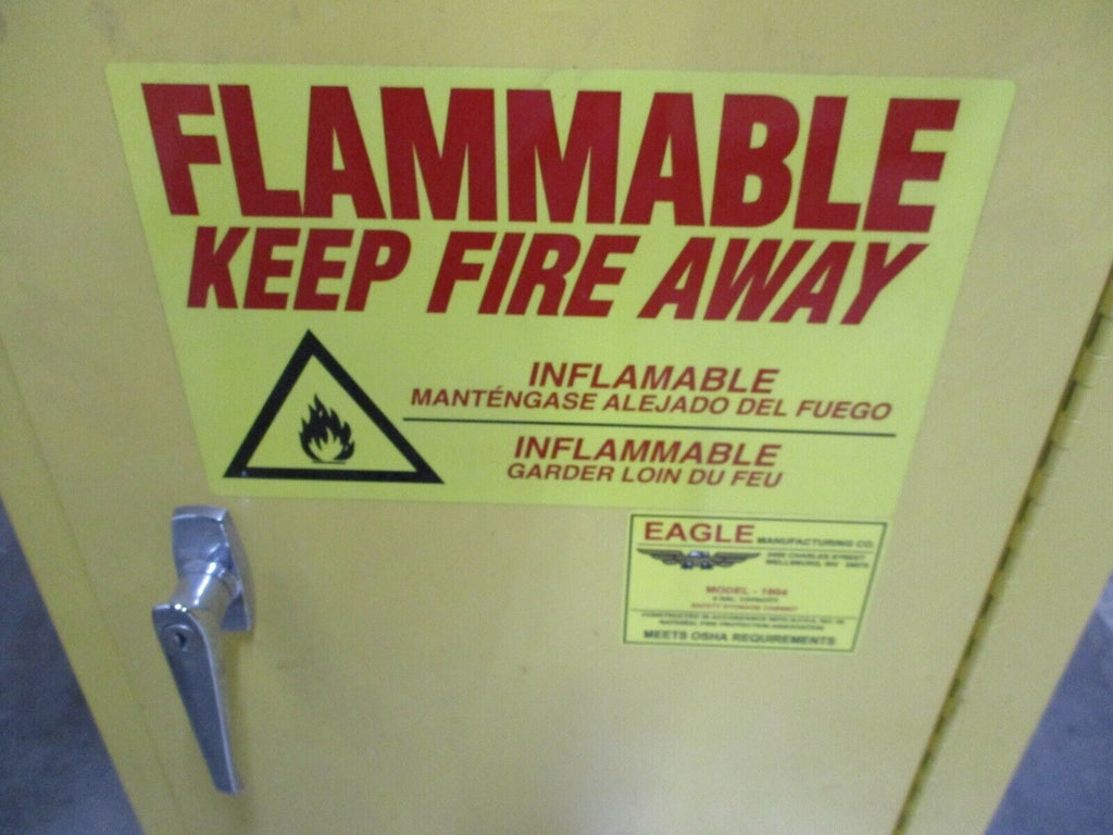 Eagle Manufacturing Safety Storage Cabinet 1904 4 Gal. Capacity Used_x000D_ Condition: UsedMPN: 1904Brand: Eagle Manufacturing Eagle Manufacturing Safety Storage Cabinet 1904 4 Gal. Capacity Used Eagle Manufacturing Safety Storage Cabinet Part #: 1904 4 Gal. Capacity UsedLOC AB11-1421 / AB12H1 Eagle Manufacturing Safety Storage Cabinet Part #: 1904 4 Gal. Capacity Uséd LOC AB11-1421 / AB12H1