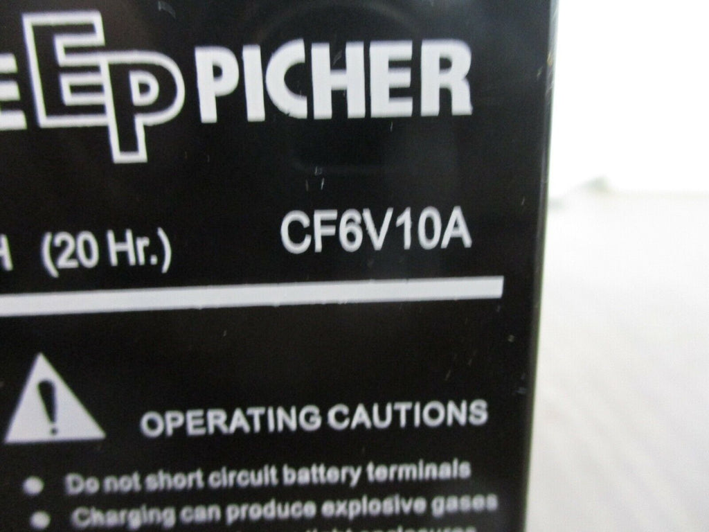 Eagle Picher Carefree Lead Acid Battery CF6V10A 6V 10AH *No Box* New Surplus Condition: New – Open boxMPN: CF6V10ABrand: EagleType: Lead Acid Battery Eagle Picher Carefree Lead Acid Battery CF6V10A 6V 10AH *No Box* New Surplus Eagle Picher Carefree Lead Acid Battery Part#: CF6V10A 6 V 10AH *No Box* New Surplus Loc: 15D4-33 Eagle Picher Carefree Lead Acid Battery Part#: CF6V10A 6 V 10AH *No Box* New Surplus Loc: 15D4-33
