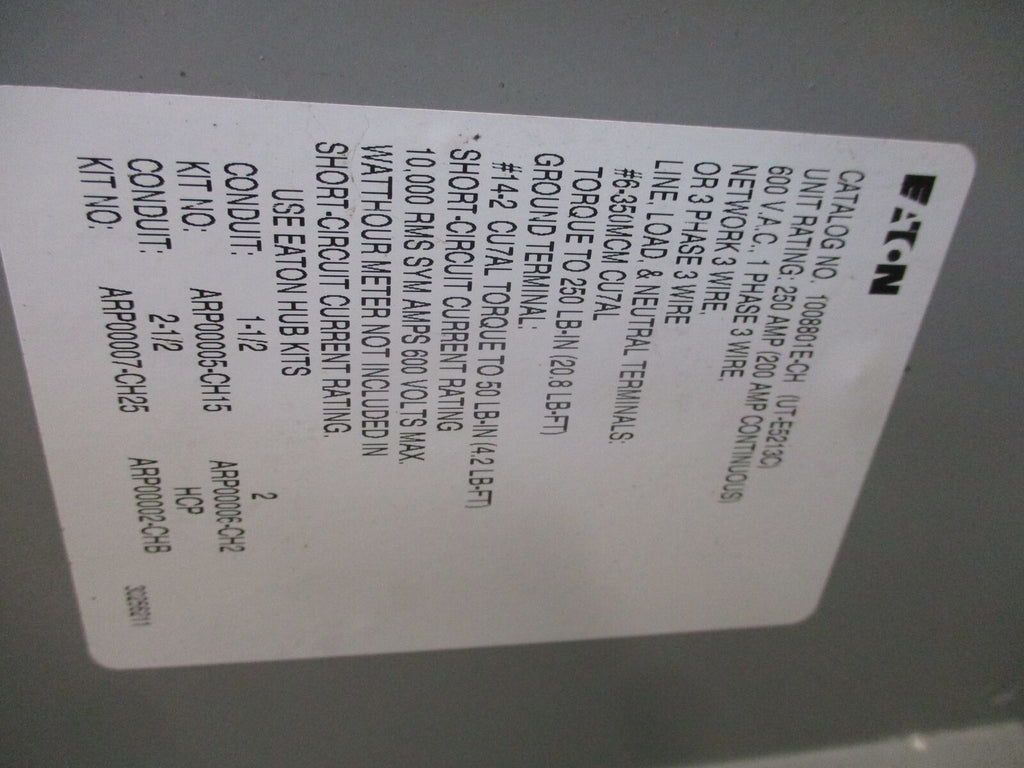 Eaton 3R Meter Socket 1008801E-CH 200A 600V Used_x000D_ Eaton 3R Meter Socket 1008801E-CH 200A 600V Used LOC AB11-7787 / AB40T2