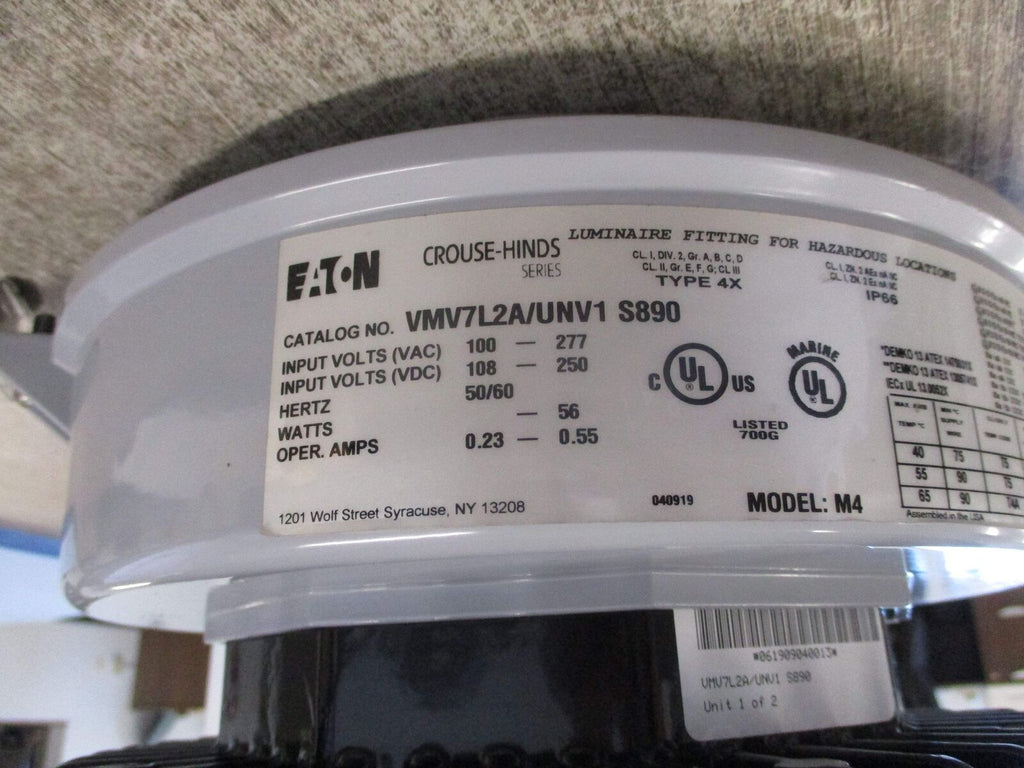 Eaton Crouse-Hinds Series Luminaire Fitting VMV7L2A/UNV1 S890 100-277V 50/60Hz 56W For Hazardous Locations Used_x000D_ Eaton Crouse-Hinds Series Luminaire Fitting VMV7L2A/UNV1 S890 100-277V 50/60Hz 56W For Hazardous Locations Used LOC 60E3-4