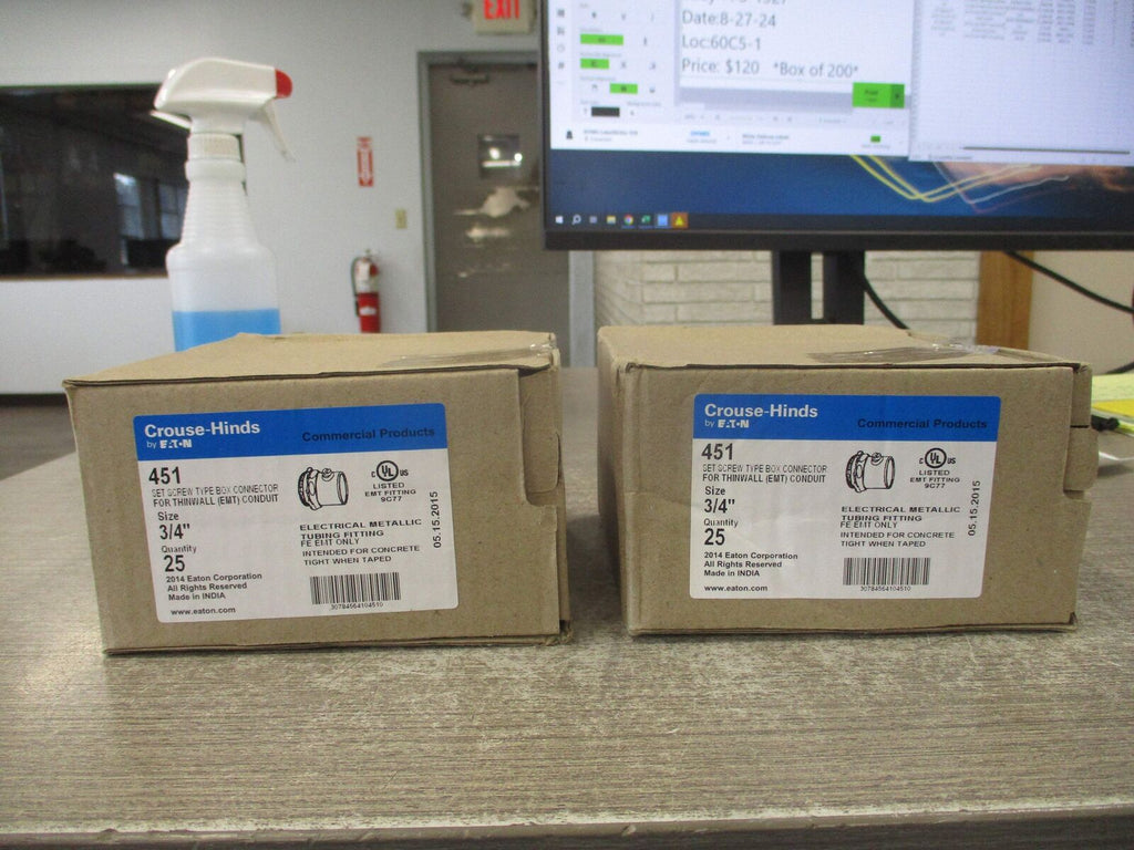 Eaton Crouse-Hinds Set-Screw Box Connector 451 3/4" *Lot of 50* New Surplus_x000D_ Eaton Crouse-Hinds Set-Screw Box Connector 451 3/4" *Lot of 50* New Surplus 60D4-3