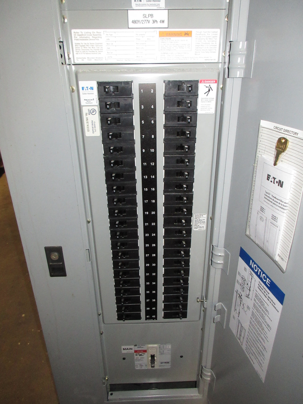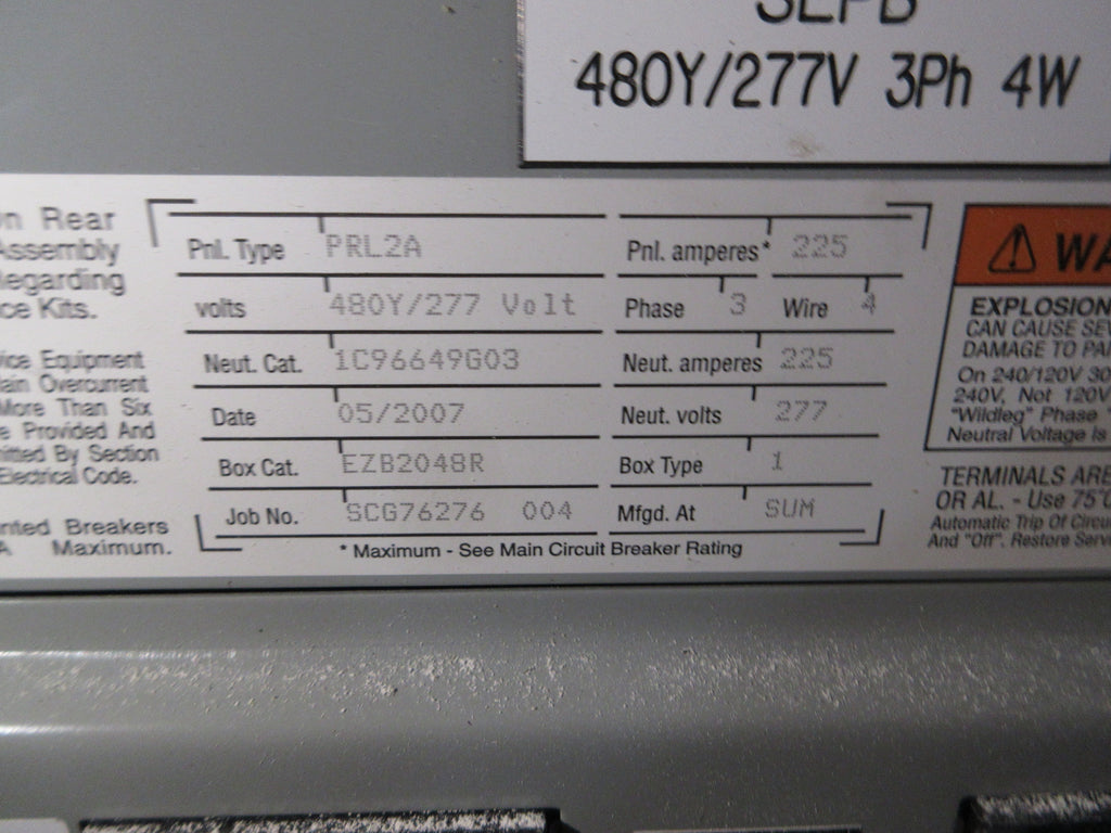 Eaton/Cutler-Hammer Main Breaker Circuit Breaker Panel Part #: IC96649G03 225 A Max 480Y/277V 42-Slot 225 A Main Breakers: (42) 20A 1P Used Loc: AB20L2-6