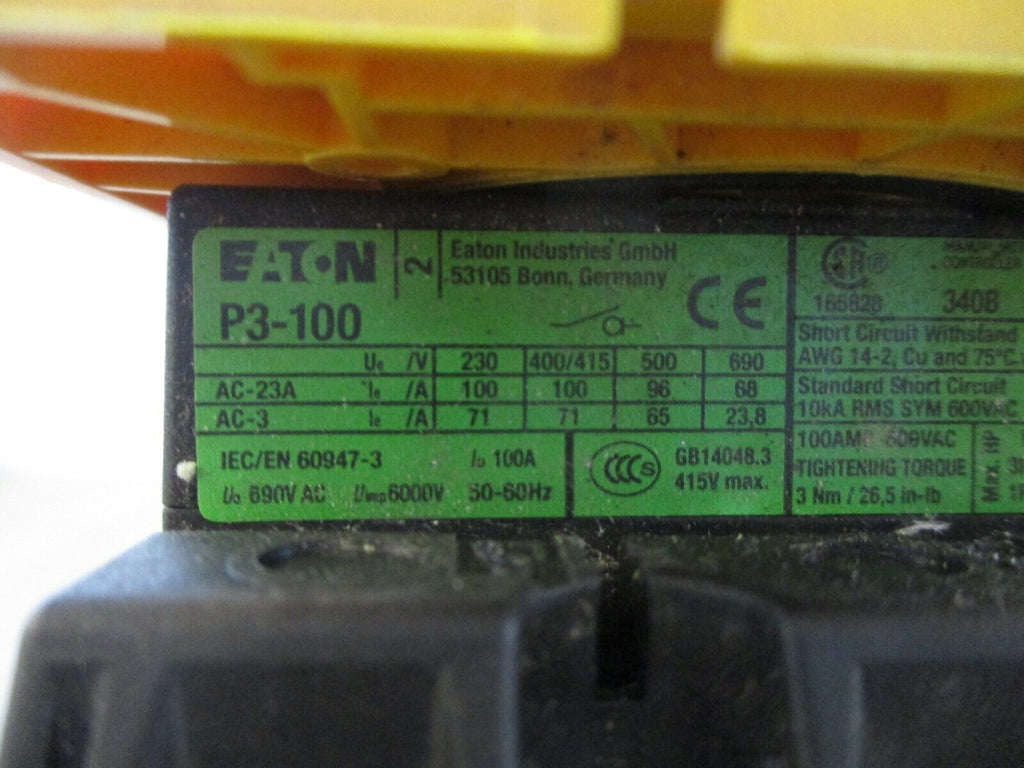 Eaton Disconnect Switch P3-100 100A 600V Used