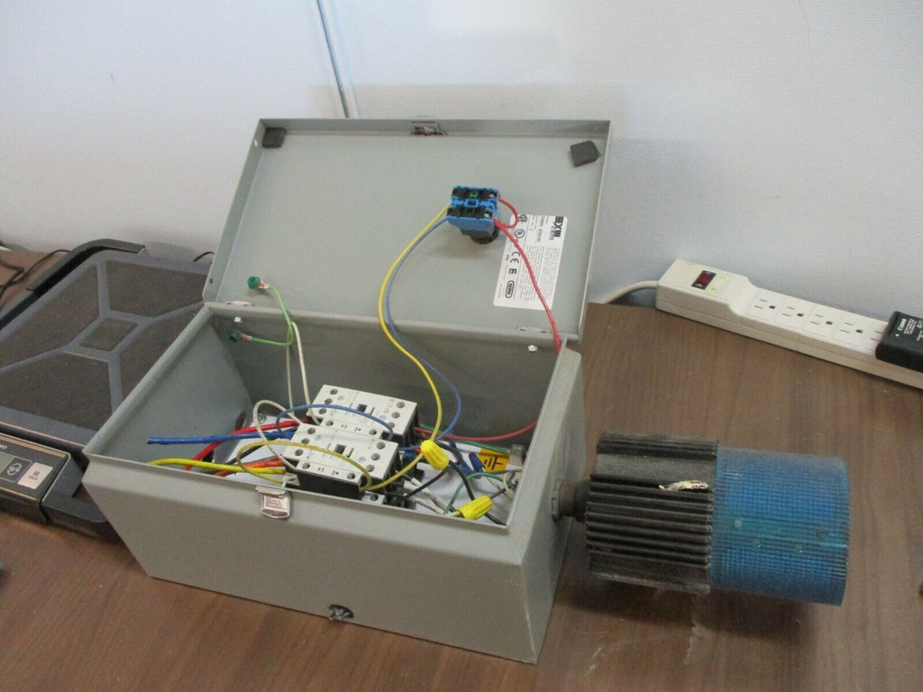 Eaton Enclosed Reversing Contactor XTCEA25C10 120V Coil Type 1 Enclosure Used Condition: UsedCoil Voltage: 120 VMPN: XTCEA25C10Brand: Eaton Eaton Enclosed Reversing Contactor XTCEA25C10 120V Coil Type 1 Enclosure Used Eaton Enclosed Reversing Contactor Part#: XTCEA25C10 120V Coil Type 1 Enclosure Used loc: AB11-2501 / AB6N2 Eaton Enclosed Reversing Contactor Part#: XTCEA25C10 120V Coil Type 1 Enclosure Uséd loc: AB11-2501 / AB6N2