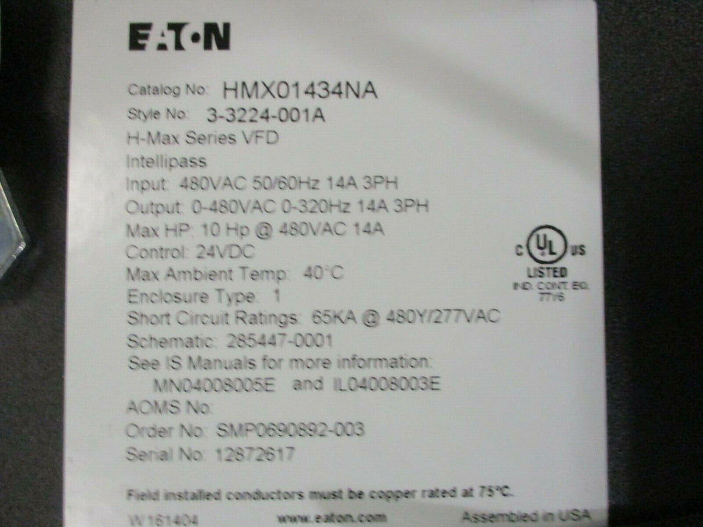 Eaton H-Max Series AC Drive w/ Intellipass Bypass HMX01434NA 10HP 3Ph Used