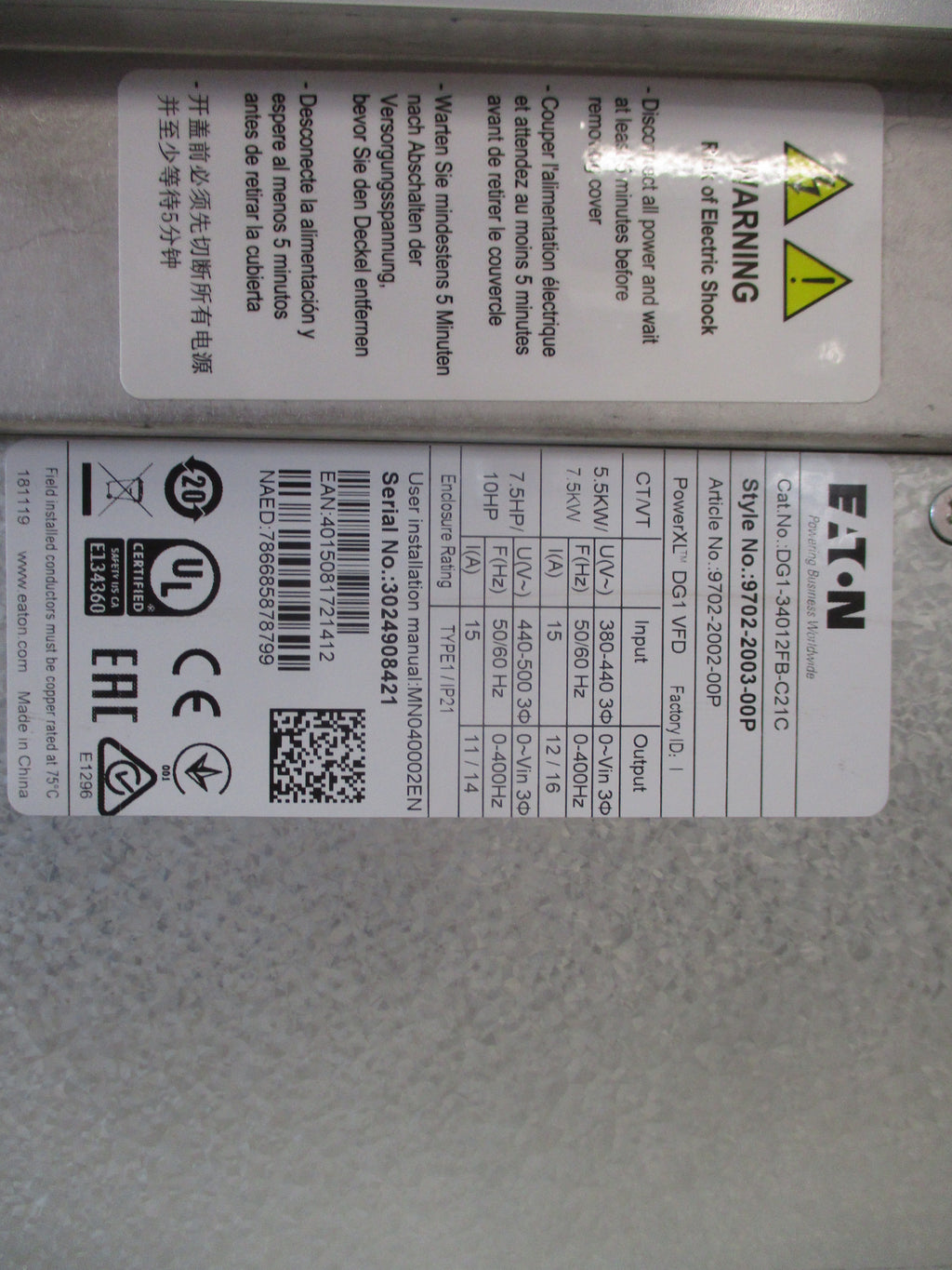 Eaton PowerXL DG1 AC Drive DG1-34012FB-C21C Style#: 9702-2003-00P 10HP 3Ph