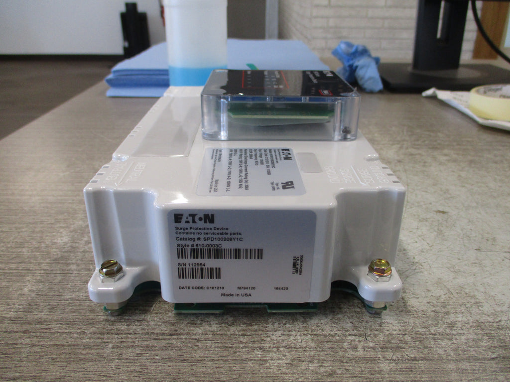 Eaton SPD Series Surge Protective Device SPD100208Y1C 120/208V 60Hz mcov: 150V L-N , L-G , N-G 300V L-L VPR: 700V L-N , L-G , N-G 1000V L-L *No Back Cover* Used LOC 58I2-3