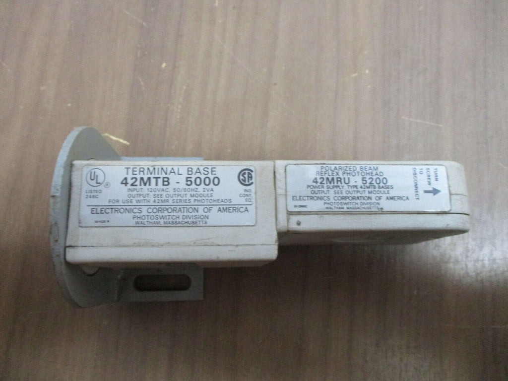 Electronics Corporation of America Polarized Beam Reflex Photohead Part#: 42MRU-5200 Base: 42MTB-5000 Used Loc: 16F4-31- Part#: 42MRU-5200