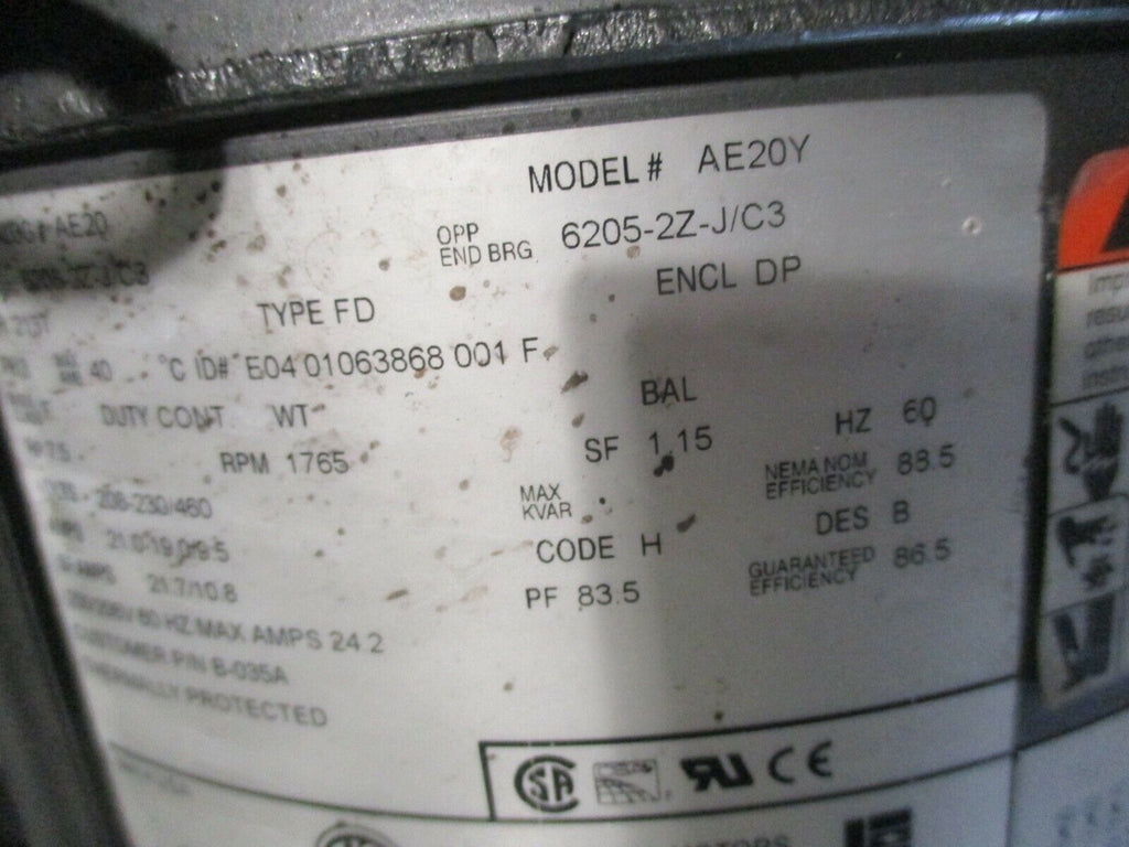 Emerson AE20 AC Motor AE20Y 7.5HP 1800RPM 208-230/460V 3Ph 60H...