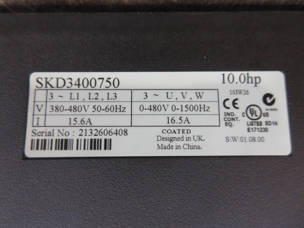 Emerson Control Techniques Commander SK AC Drive SKD3400750 10HP 3Ph Used