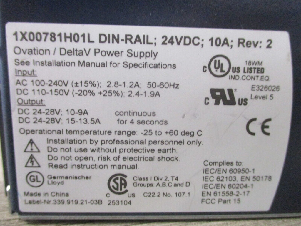 Emerson Ovation/Delta DIN-Rail Power Supply 1X00781H01L Rev.2 ...