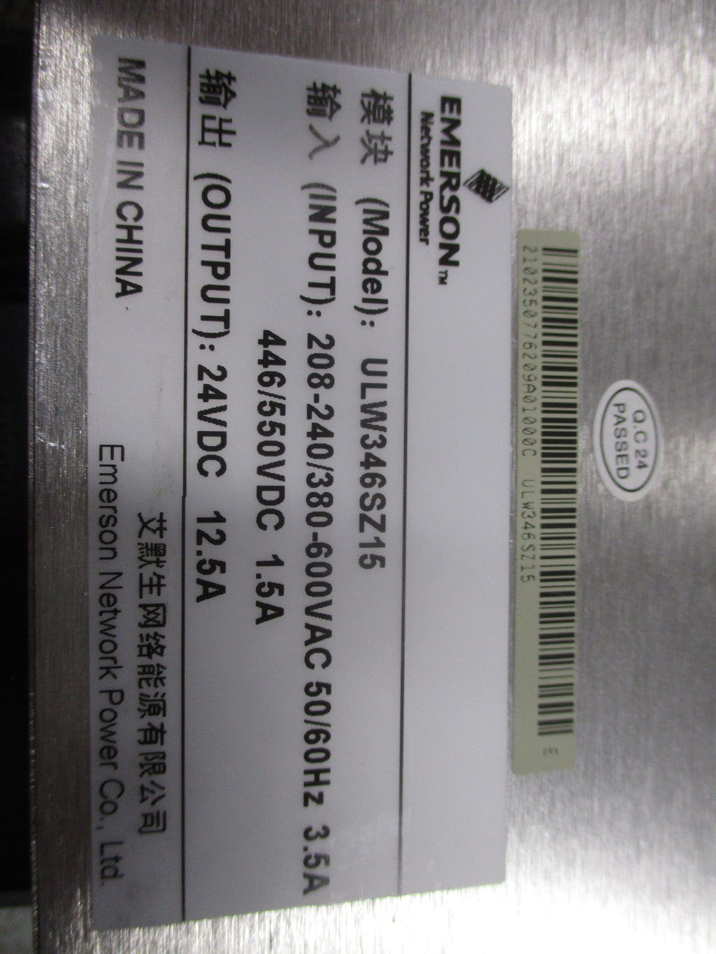 Emerson Power Supply ULW346SZ15 Input: 208-240/380-600VAC 50/60Hz 3.5A