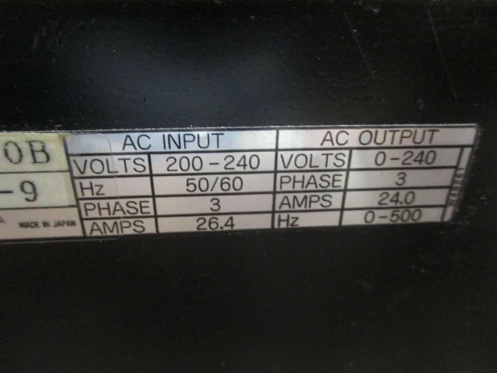 EMS AC Drive CIMR-55AS4-2020B 7.5HP 3Ph Used Condition: UsedMaximum Load: 7.5 HPType: General Purpose AC DriveInput Voltage: 200-240 VMPN: CIMR-55AS4-2020BBrand: EMS EMS AC Drive CIMR-55AS4-2020B 7.5HP 3Ph Used EMS AC Drive Part #: CIMR-55AS4-2020B 7.5 HP 3Ph Input:200-240 V50/60 Hz26.4 AOutput:0-240 V24 A0-500 Hz Used Loc: 19A1-5 EMS AC Drive Part #: CIMR-55AS4-2020B 7.5 HP 3Ph Input: 200-240 V 50/60 Hz 26.4 A Output: 0-240 V 24 A 0-500 Hz Uséd Loc: 19A1-5
