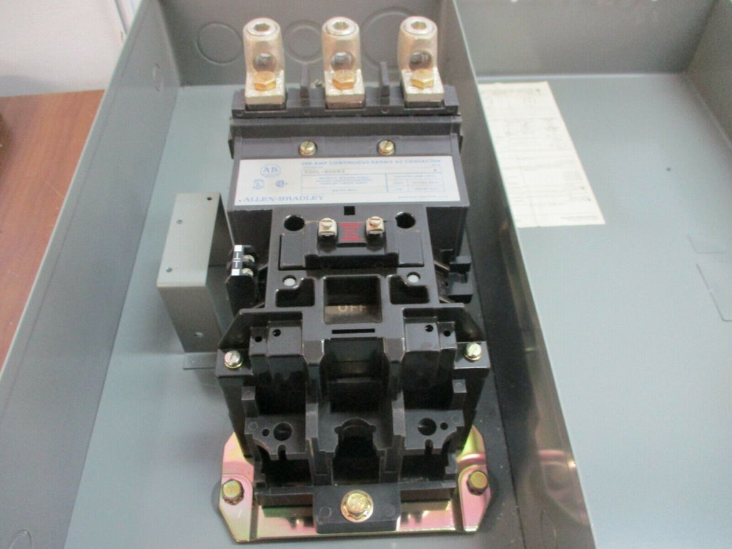 Enclosed Lighting Contactor 500L-EAD93 Ser.B 115-120V Coil 200A 600V Used Condition: UsedContact Amperage Rating: 200 AMPN: 500L-EAD93Coil Volts: 115-120 VBrand: Allen-Bradley Enclosed Lighting Contactor 500L-EAD93 Ser.B 115-120V Coil 200A 600V Used Enclosed Lighting Contactor Part#: 500L-EAD93 Ser.B 115-120V Coil 200A 600V Type 1 Enclosure Contactor: 500L-EOD93 Used loc: AB11-1905 / AB13O2 Enclosed Lighting Contactor Part#: 500L-EAD93 Ser.B 115-120V Coil 200A 600V Type 1 Enclosure Contactor: 500L-EOD93 Uséd loc: AB11-1905 / AB13O2