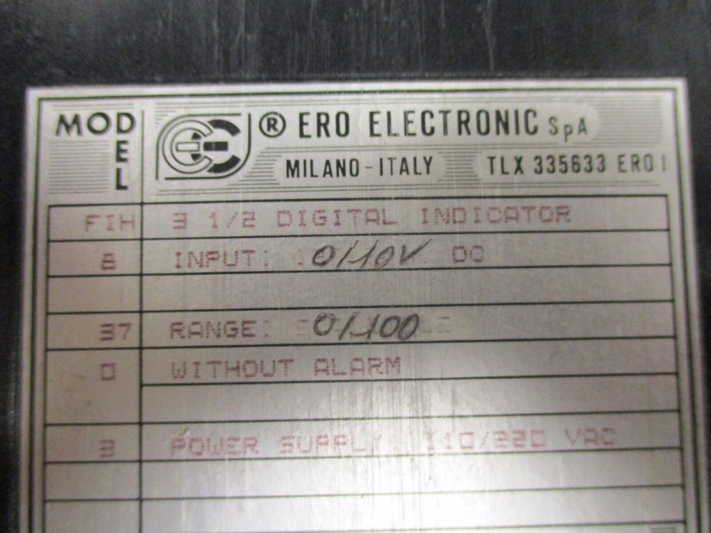 Ero Electronics Temperature Indicator F-48 Input: 0-10VDC Range: 0-100°C Used Condition: UsedBrand: Ero ElectronicsMPN: F-48 Ero Electronics Temperature Indicator F-48 Input: 0-10VDC Range: 0-100°C Used Ero Electronics Temperature IndicatorPart #: F-48 Input: 0-10VDC Range: 0-100°C *Missing Cover*UsedLOC 3B5-16 Ero Electronics Temperature Indicator Part #: F-48 Input: 0-10VDC Range: 0-100°C *Missing Cover* Uséd LOC 3B5-16