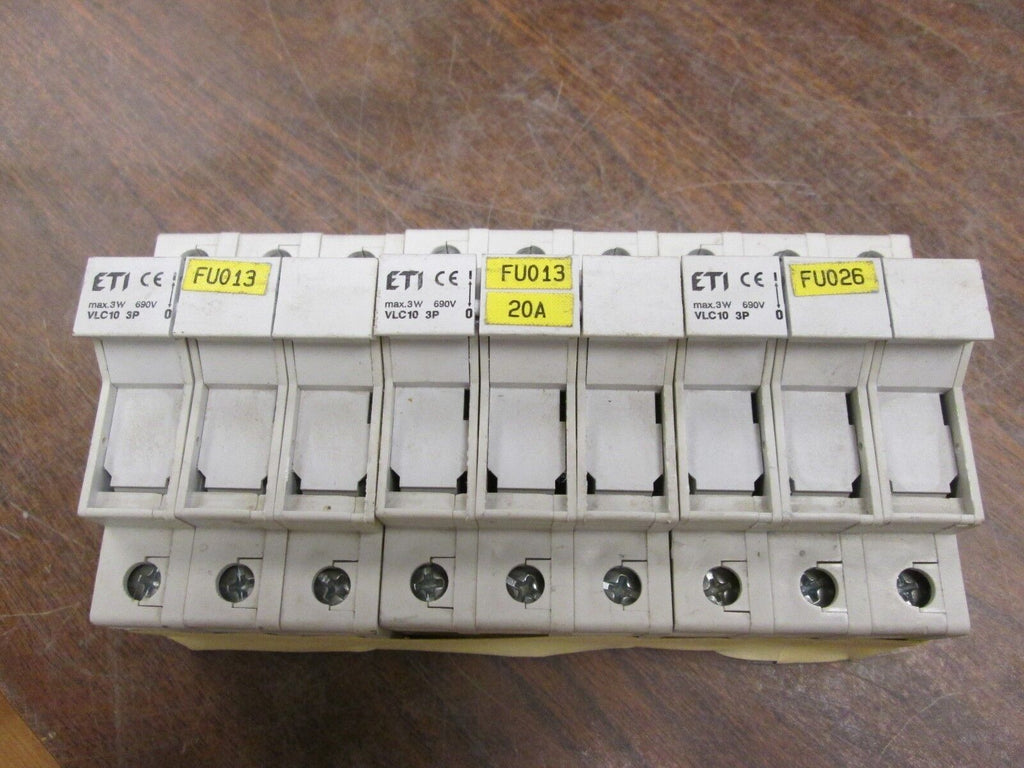 ETI Fuseholder ACC-22B 3P 3W Max 690V Lot of 3 Used_x000D_ Condition: UsedBrand: ETIModel: FuseholderMPN: AC-22B ETI Fuseholder ACC-22B 3P 3W Max 690V Lot of 3 Used ETI Fuseholder ACC-22B 3P 3W Max 690V Lot of 3 UsedLOC# 15I4-19 ETI Fuseholder ACC-22B 3P 3W Max 690V Lot of 3 Uséd LOC# 15I4-19
