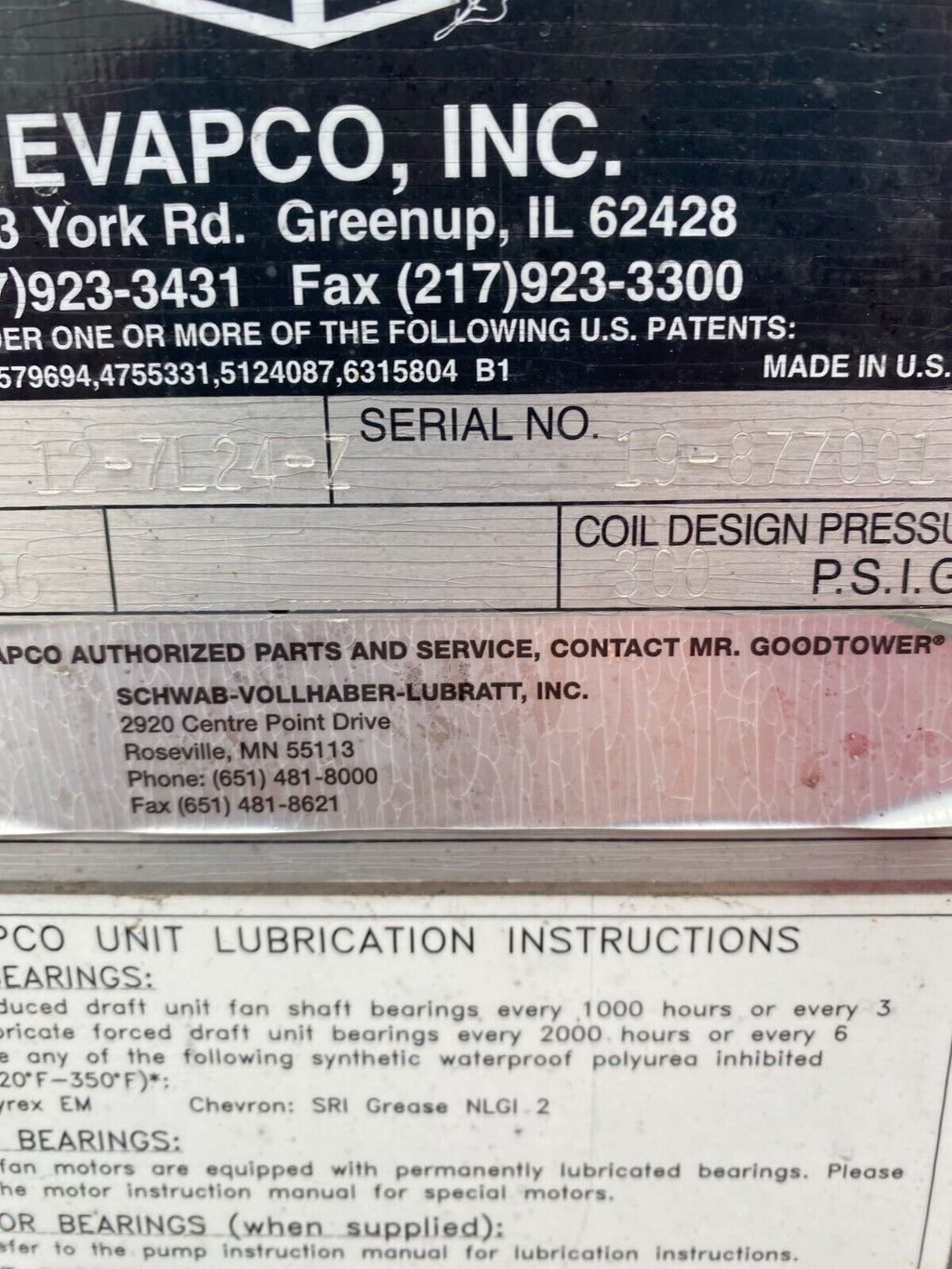 Evapco ATWB Closed Loop Cooling Tower Part # ATWB 12-7L24-Z S...
