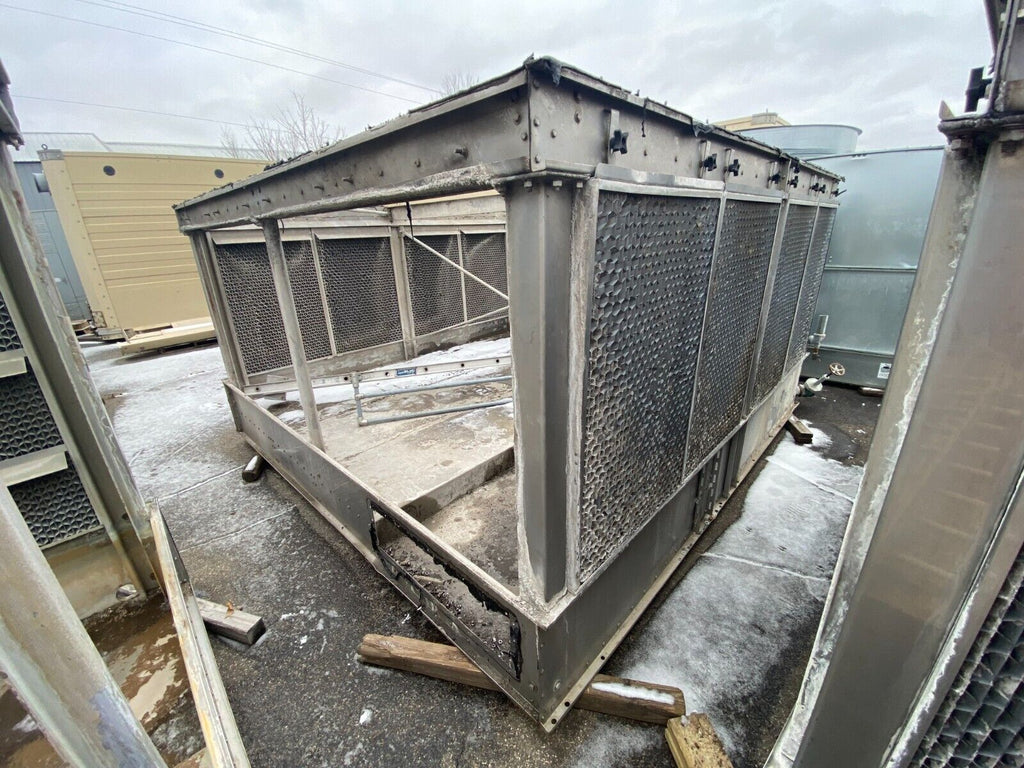 Evapco ATWB Closed Loop Cooling Tower Part # ATWB 12-7L24-Z Serial # 19-87700 1500 Ton Stainless Steel Basin Includes Ladder Missing (4) Fill sections MFD 2019 Total Weight 23,810 lb Dims13'-5" x 11'-10" x 15'-8" Will ship in two pieces max height 11'-1" Used